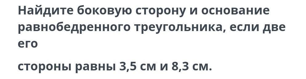 ответ: боковая сторона =8,3 см, а основание=3,5 см
