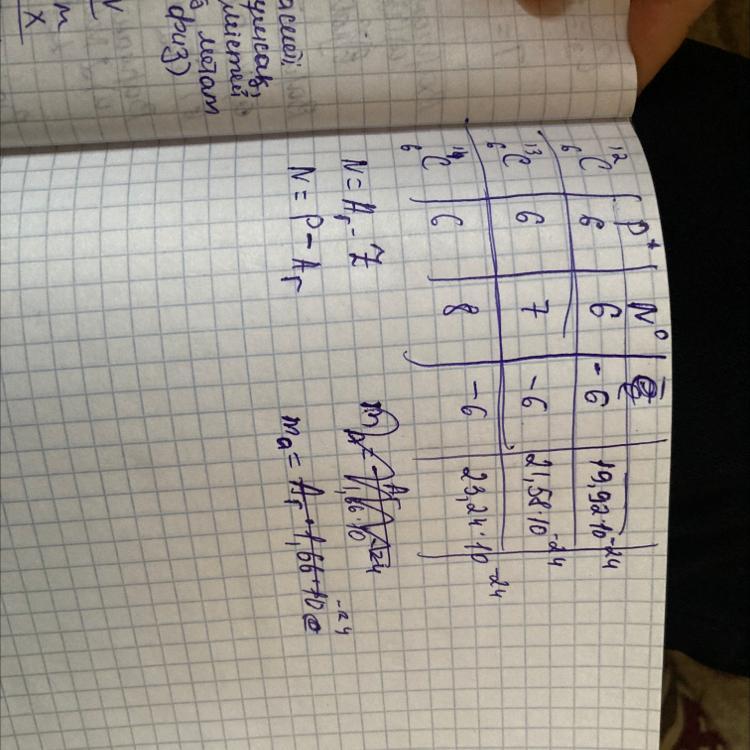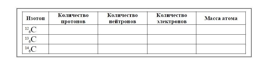 изотоп количество протонов, количество нейтронов, количество электронов, масса атома ¹²6С ¹³6С ¹⁴6С