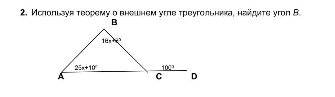 внешний угол треугольника равен сумме двух внутренних углов треугольника не смежных с ним