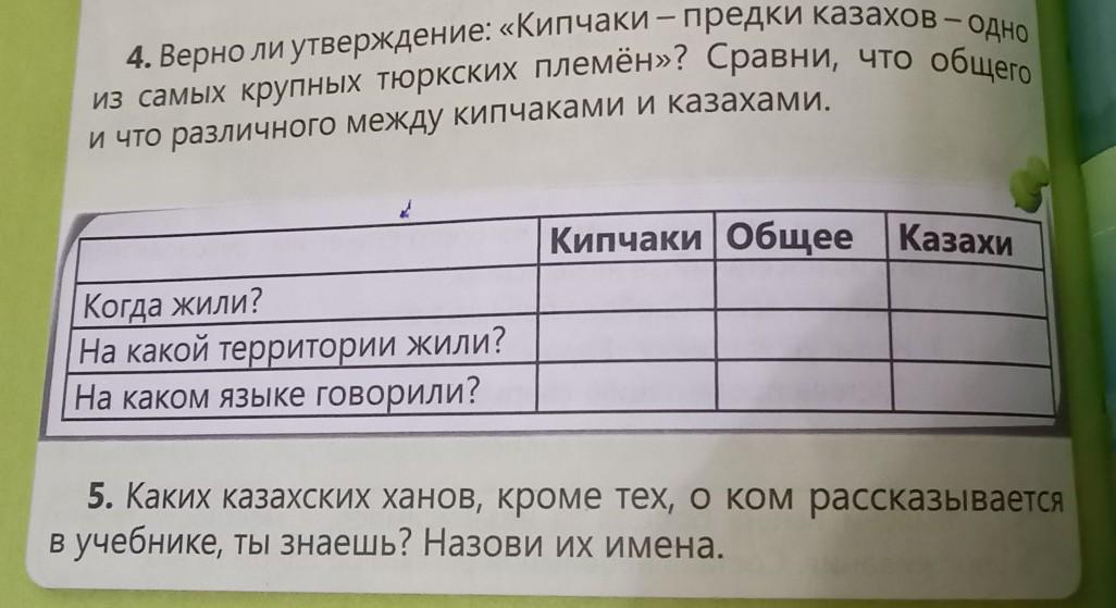 Кипчаки (кыпчаки) жили на огромной территории от озера Зайсан на Алтае до берегов Дуная (XI—XII вв.), в поздний период (после XV в.) жили в основном на территории современного Центрального Казахстана, на южных берегах Сырдарьи в её среднем и нижнем течении, на берегах Тобола и участвовали в этногенезе казахов. Тюркский язык