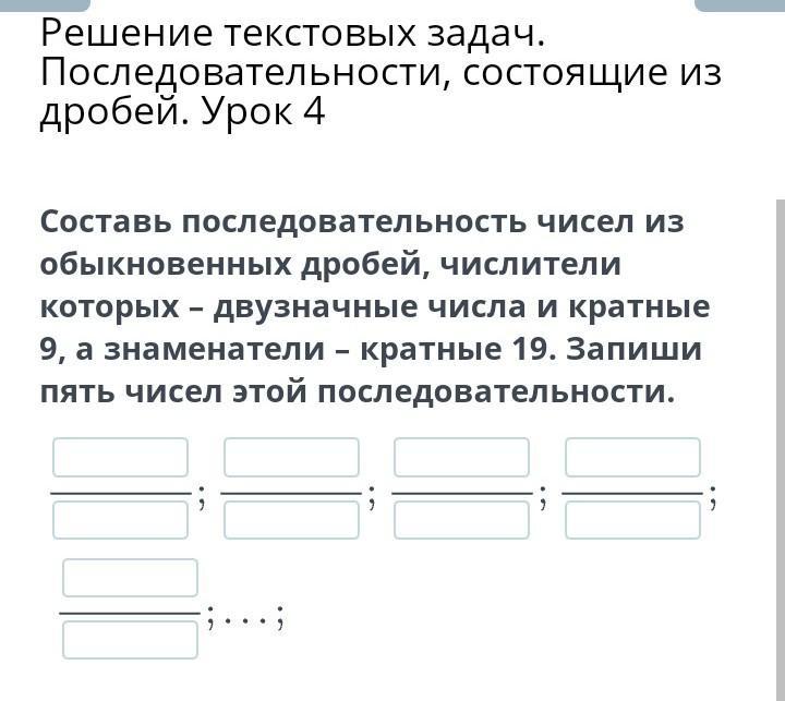 Решение текстовых задач. Последовательности, состоящие из дробей. Урок 4