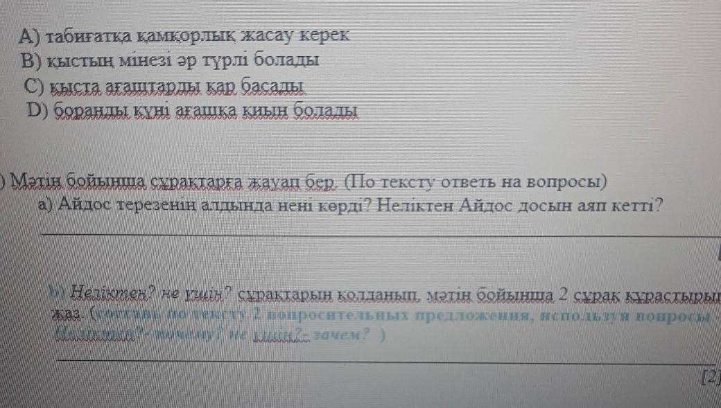 2) Мәтін бойынша сұрақтарға жауап бер. По тексту ответы на вопросы)