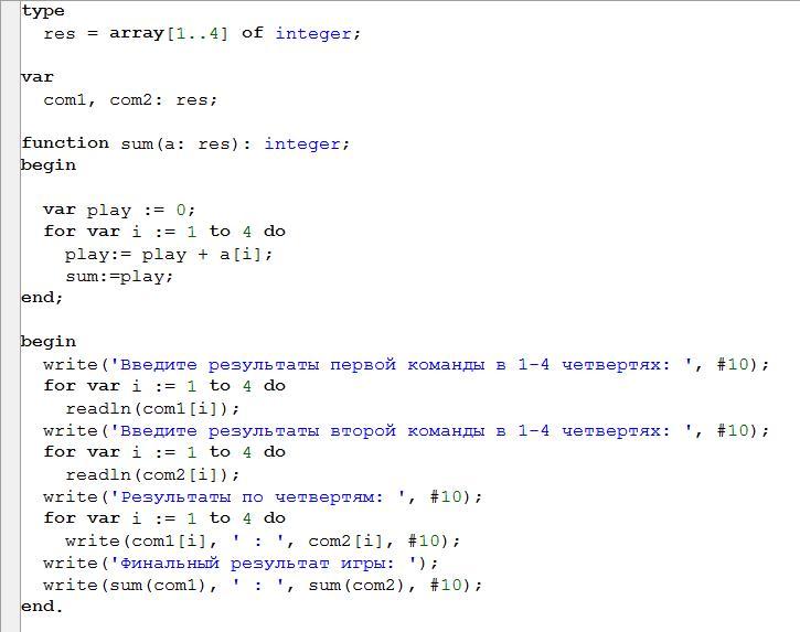 были показаны по окончанию периода. Составьте программу, которая выводит итоговые результаты игры