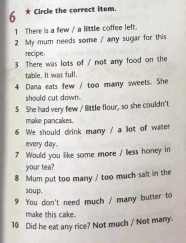 1) а little 2) some 3) lots of 4) to 5) little 6) a lot of 7) more 8) too much 9) much 10) Not much