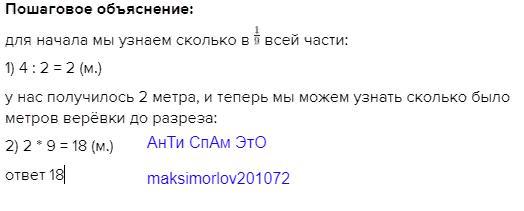 у нас получилось 2 метра, и теперь мы можем узнать сколько было метров верёвки до разреза: