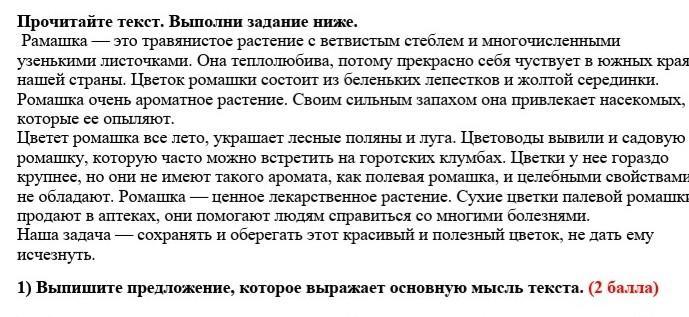 1) Выпишите предложение, которое выражает основную мысль текста с рочна
