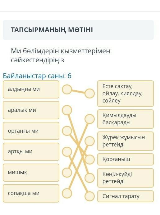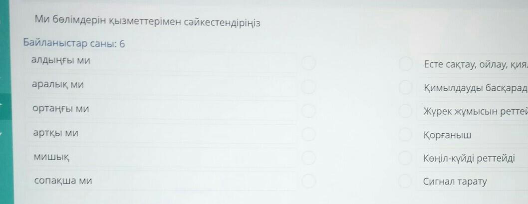 Ми бөлімдерін қызметтерімен сәйкестендіріңіз