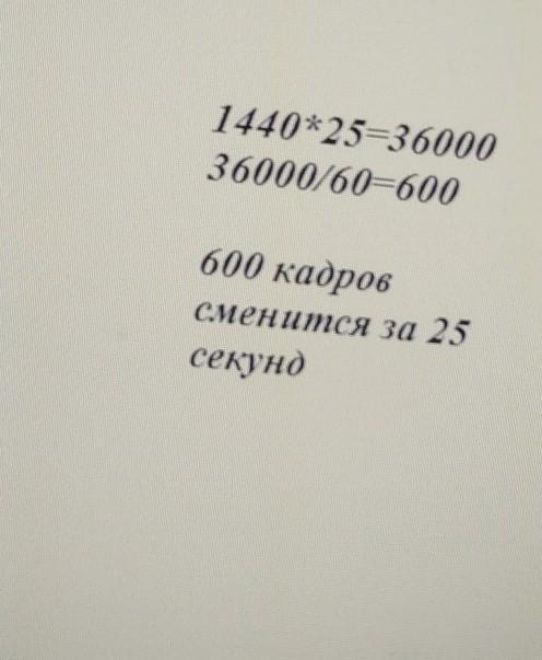Телевизор демонстрирует 1440 кадров в минуту. Сколько кадров сменится на экране за 25 секунд?