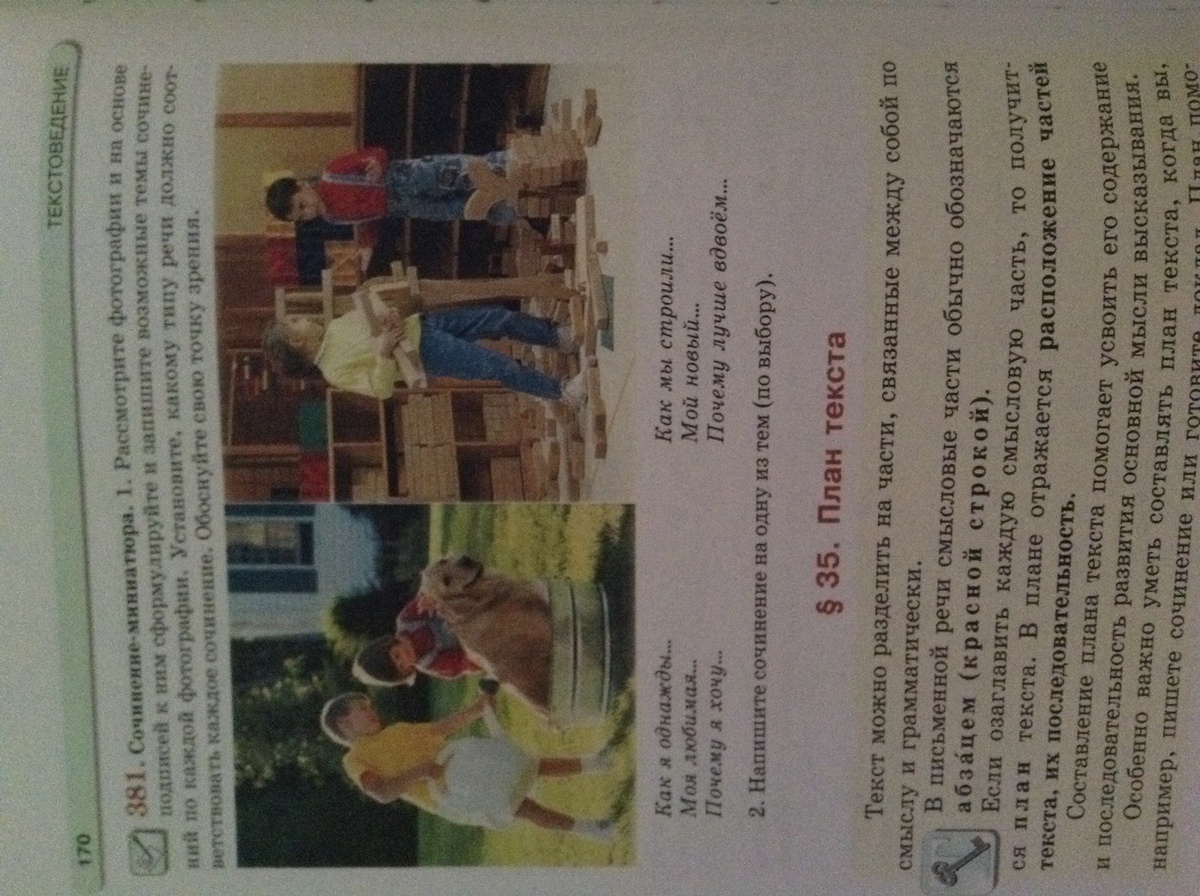 Мы купили собаку. А когда приехали домой решили её помыть пока родители не видят. Мы взяли лейку ,налили воды и начали собаку поливать.Перед этим мы посадили её в железный таз.К первой картине! Я с братом решили сделать танк из дерева на 23 февраля. Я принёс много деревяшек .А мой брат молотки и гвозди. Наша квартира превратилась в рабочий цех. Когда мы сделали нас похвалили!