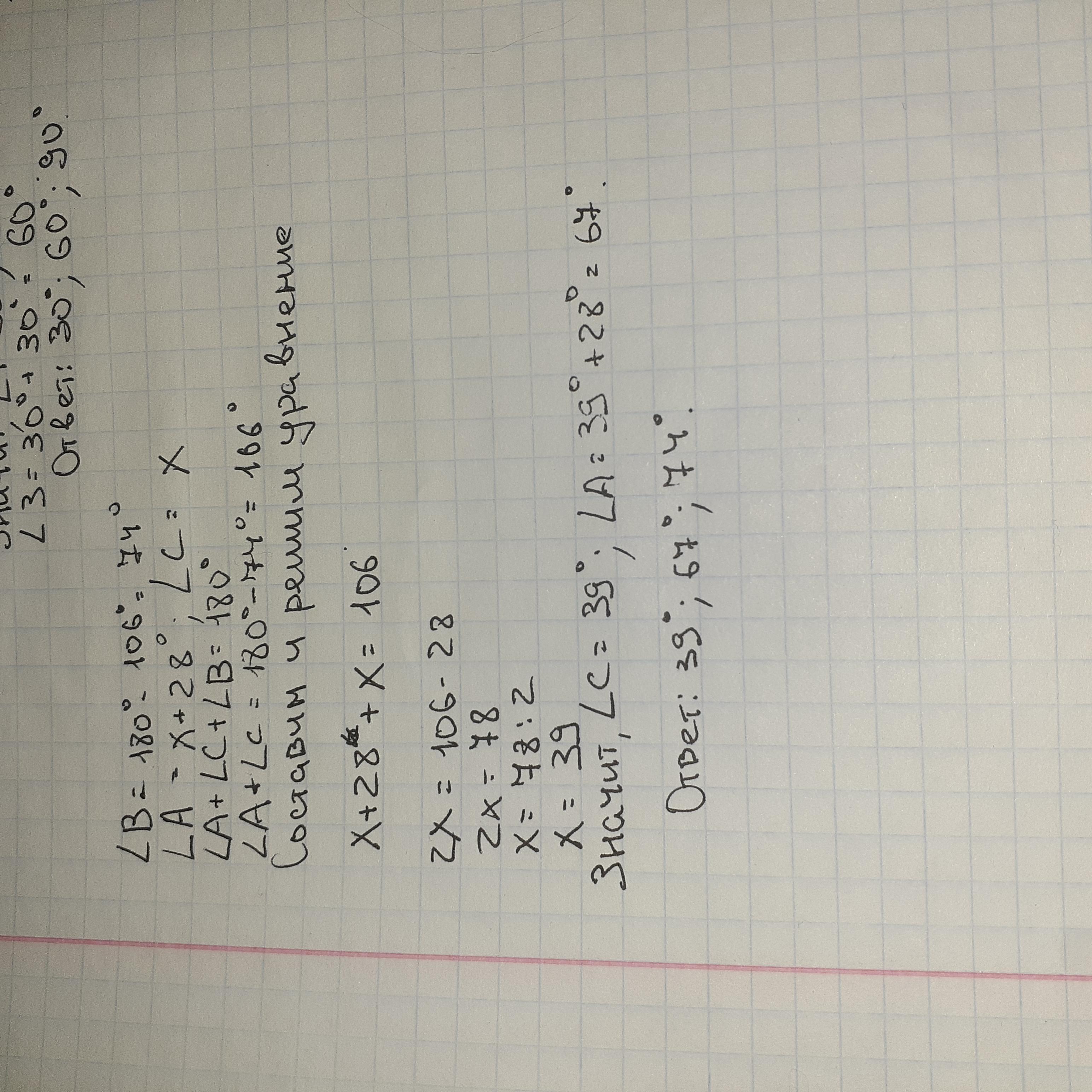 2.) Пусть ∠C - x, тогда ∠A - x+28. Составим и решим уравнение.