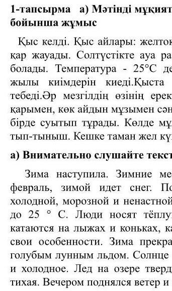Қыста қандай айлар бар? Қыста ауа-райы қандай болады? Адамдар қыста қандай киім киеді? Адамдар қыста қалай демалады? Қыста күн қандай? Қыста көлде не болады?
