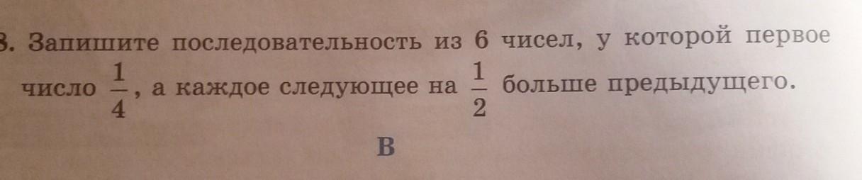 Запиши последовательность из шести чисел у кого первое число 1/4 а Каждое следующее на 1/2 больше предыдущего