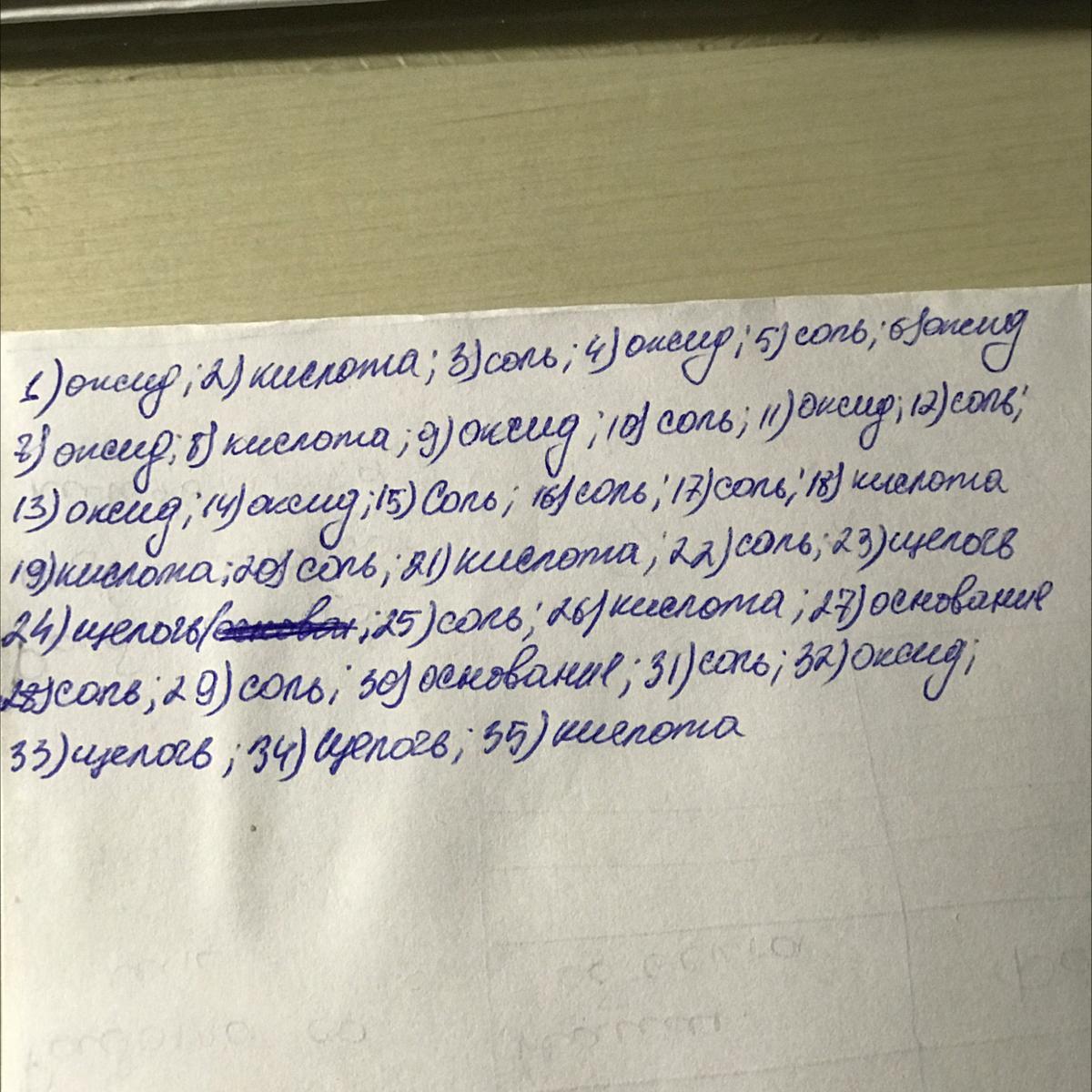 № Формула/ Класс Оксид Основание Кислота Соль