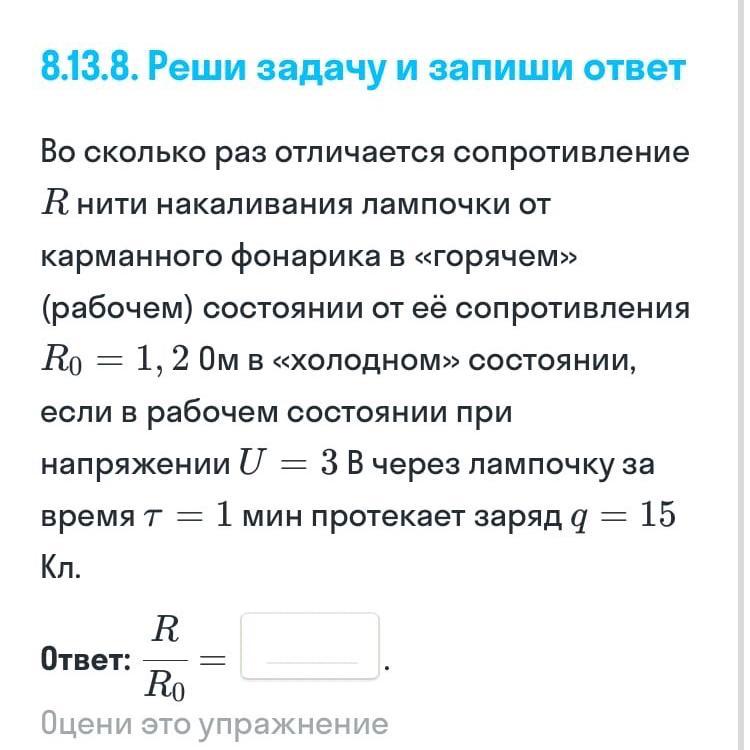 R / Ro = 12 / 1.2 = 10 Раз сопротивление нагретой спирали больше