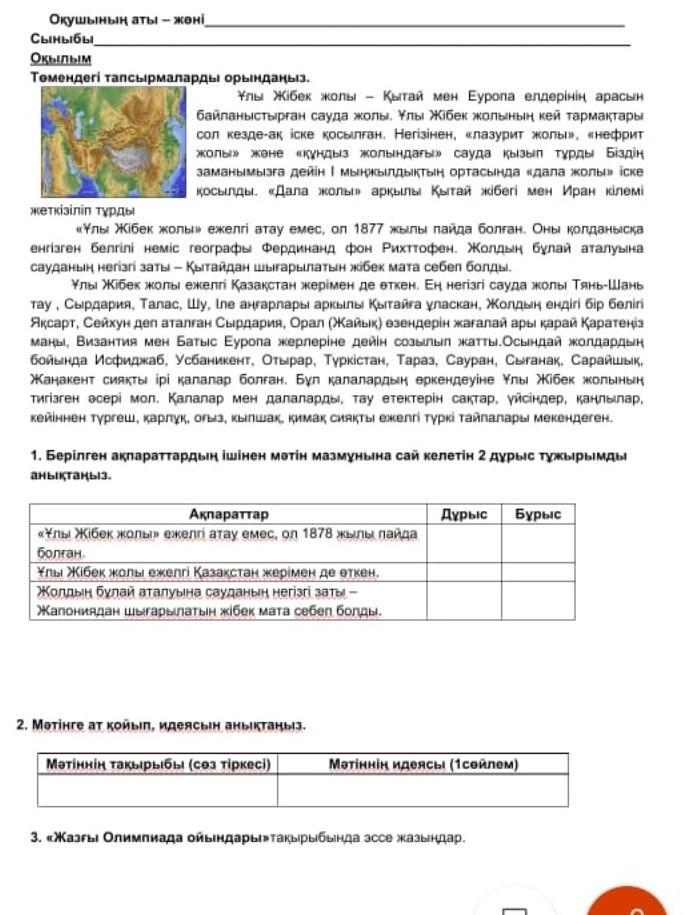 Идеясы: Менің ойымша мәтінде Ұлы Жібек жолының пайда болуы , қандай жолдармен өткені туралы айтылған .(Бұл менің ойым )