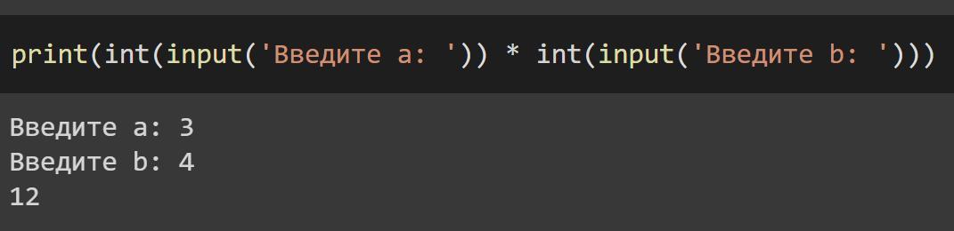Создайте в среде программирования Python программу по условию: Определить произведение двух целых чисел, введенных с клавиатуры. Скопируйте листинг программы в ответ. *