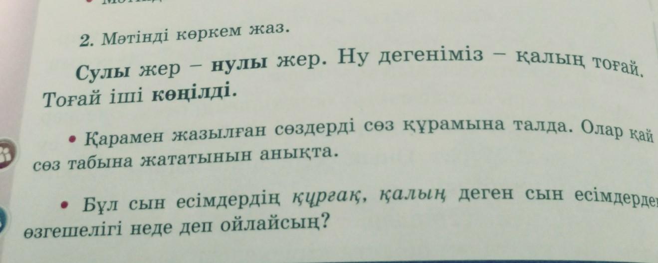 Ответ: Су- түбір лы-жұрнақ , нулы- түбір, көңіл- түбір іл-жұрнақ ді- жалғау. Олар сын есімге жатады.