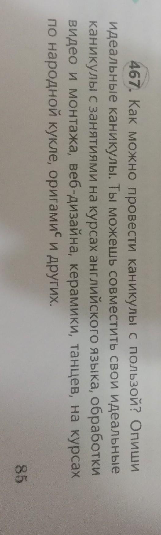 467. Как можно провести каникулы с пользой? Опиши