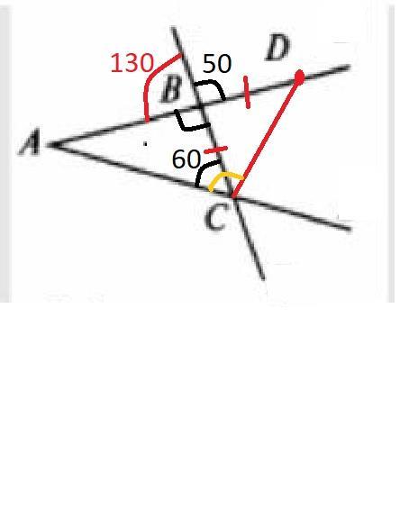 2. Искомый угол складывается из двух: АСВ+ВСД. T-kABC: <A=180 – (50+60)=70.