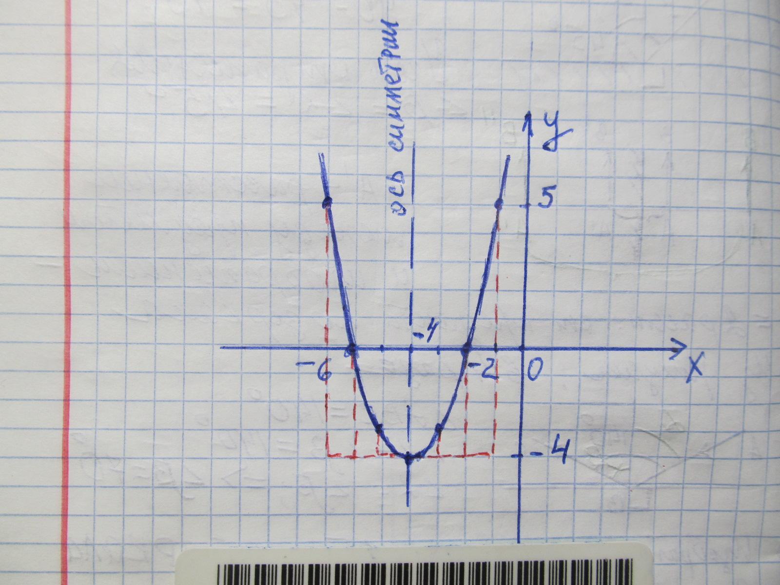 Ось симметрии идет параллельно оси ОУ через точку х=-4.