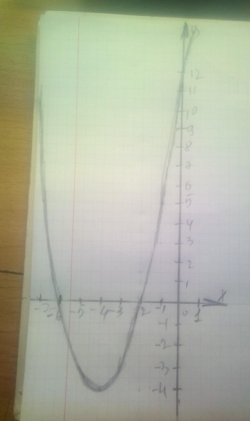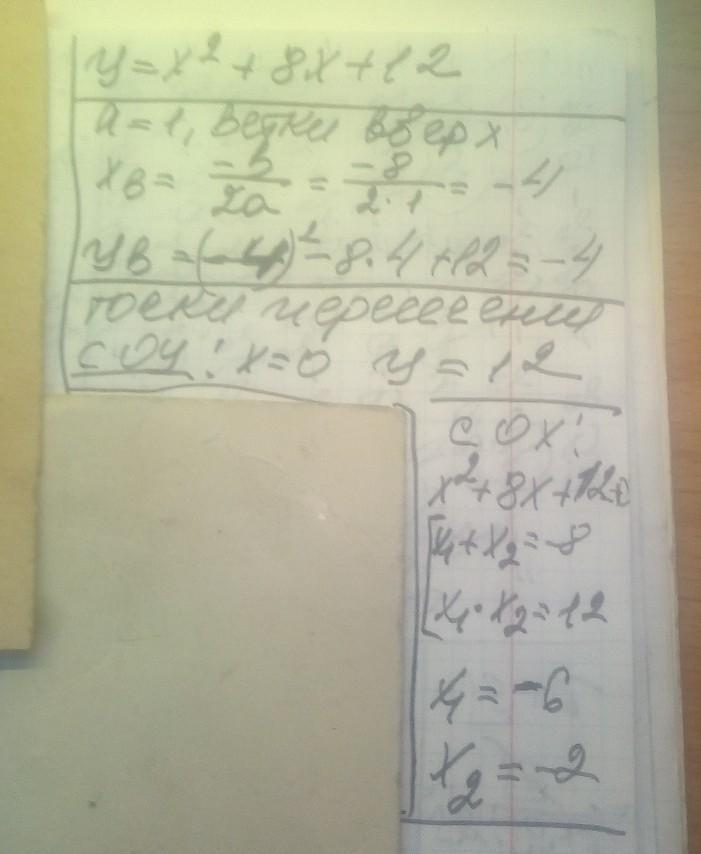 у(вершины)=(-4)² + 8(-4) + 12=16 - 32 + 12=-4