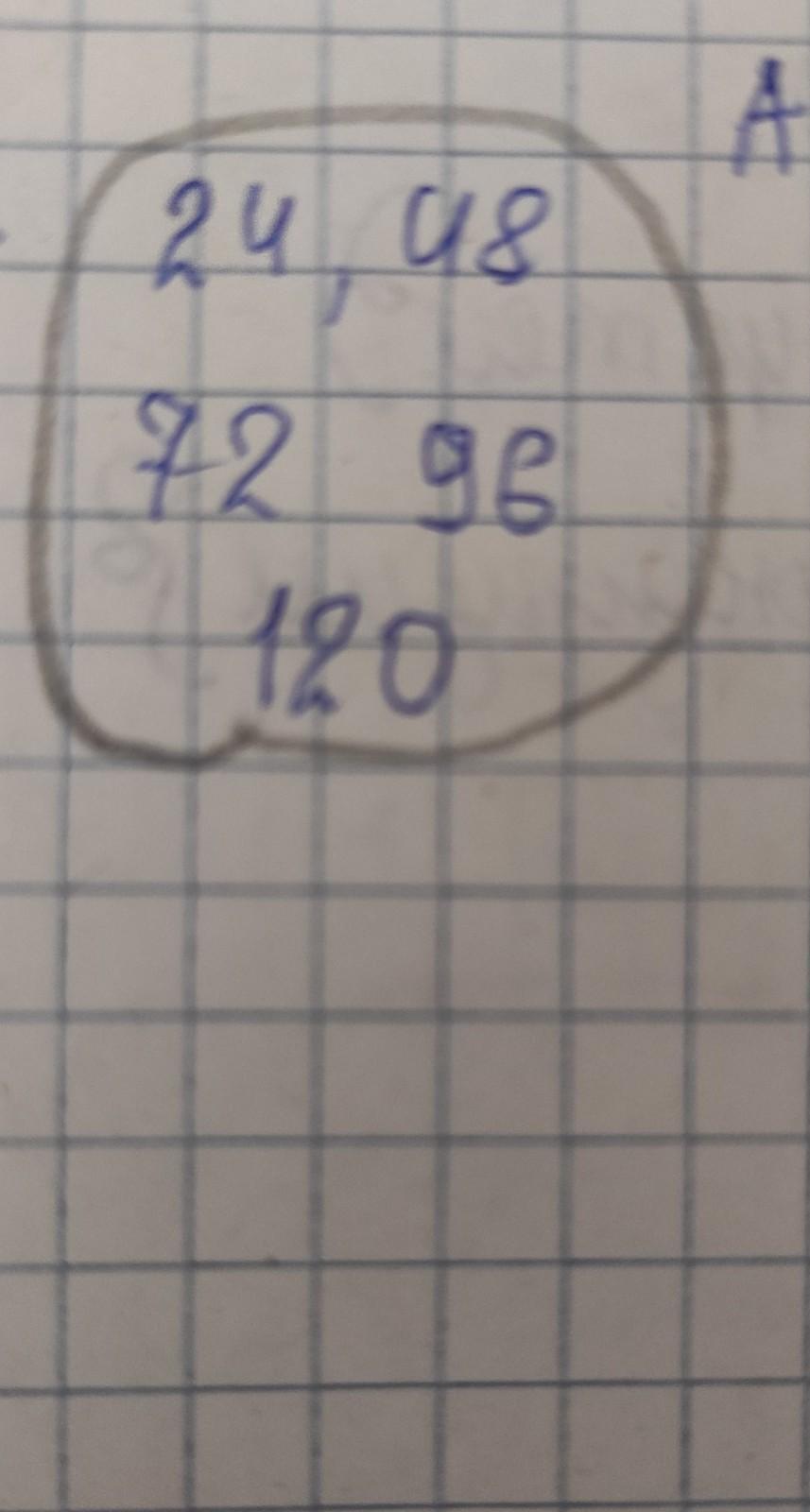 24 санына еселік болатын сандар—24,48,72,96,120,144,168,192,216,240 т.б