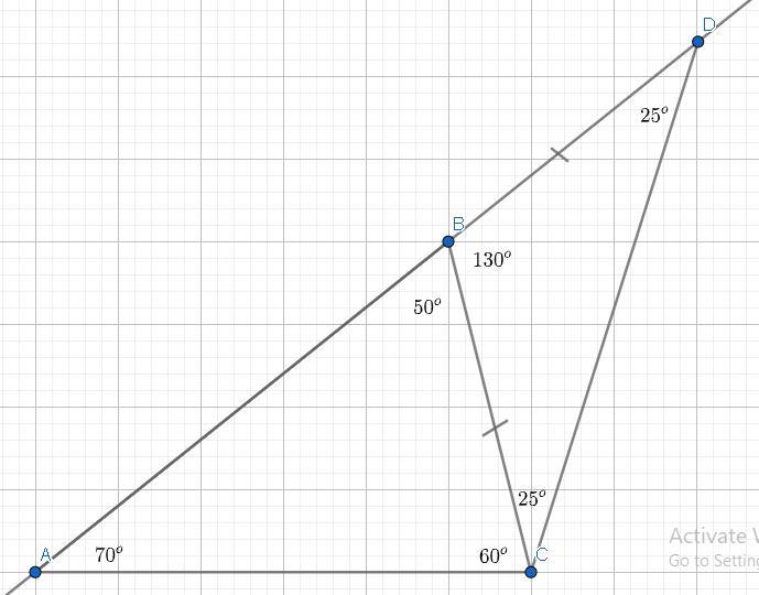 <BCD = (180-130)/2 = 25° => <BCD == <BDC = 25°
