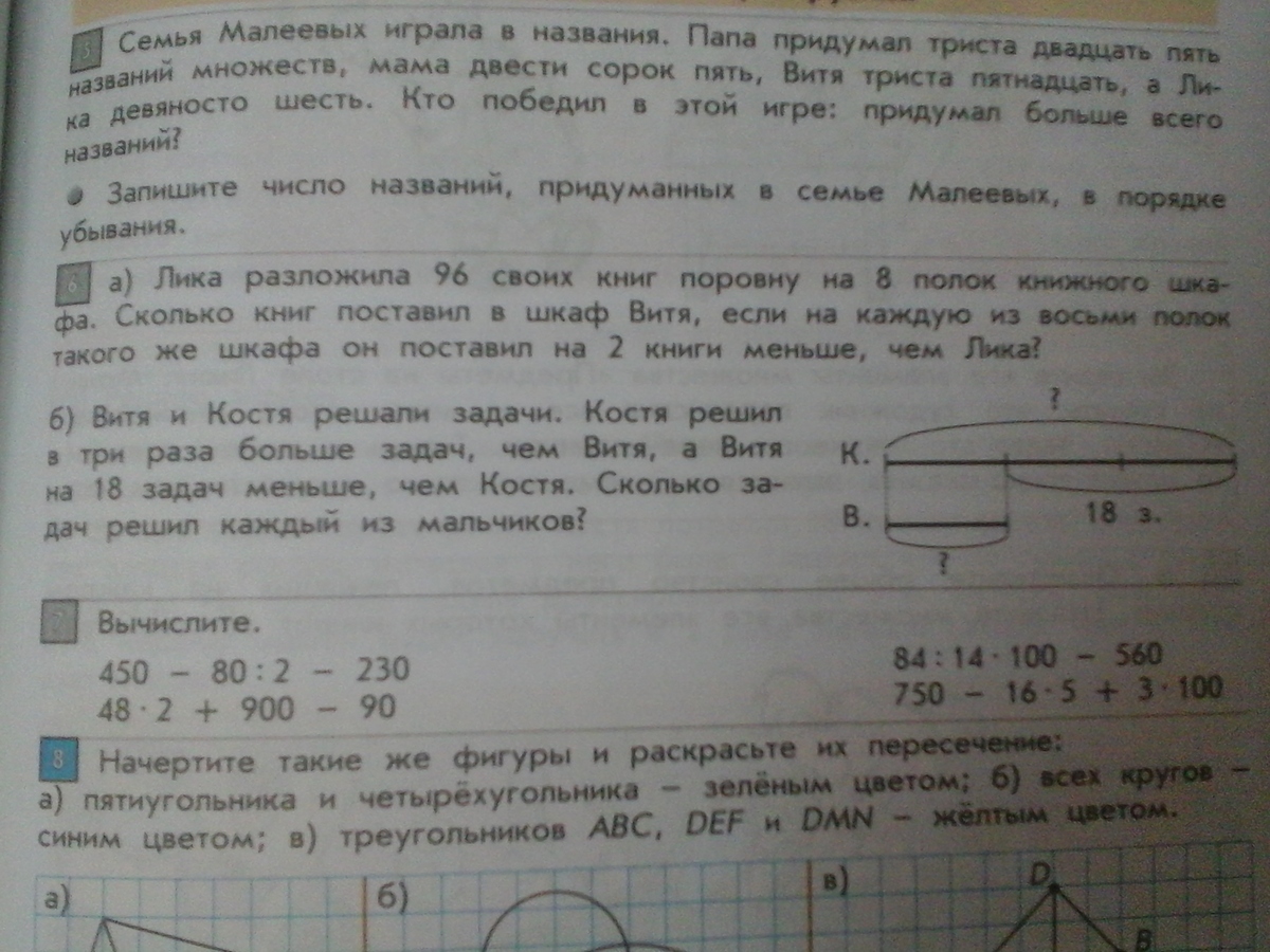 Лика разложтла 96 своих кгиг поровну на 8 полок кнтжного шкафа. Сколько книг поставил в шкаф Витя, если на каждую из восьми полок такого же шкафа он поставил на 2 книги меньше чем Лика?