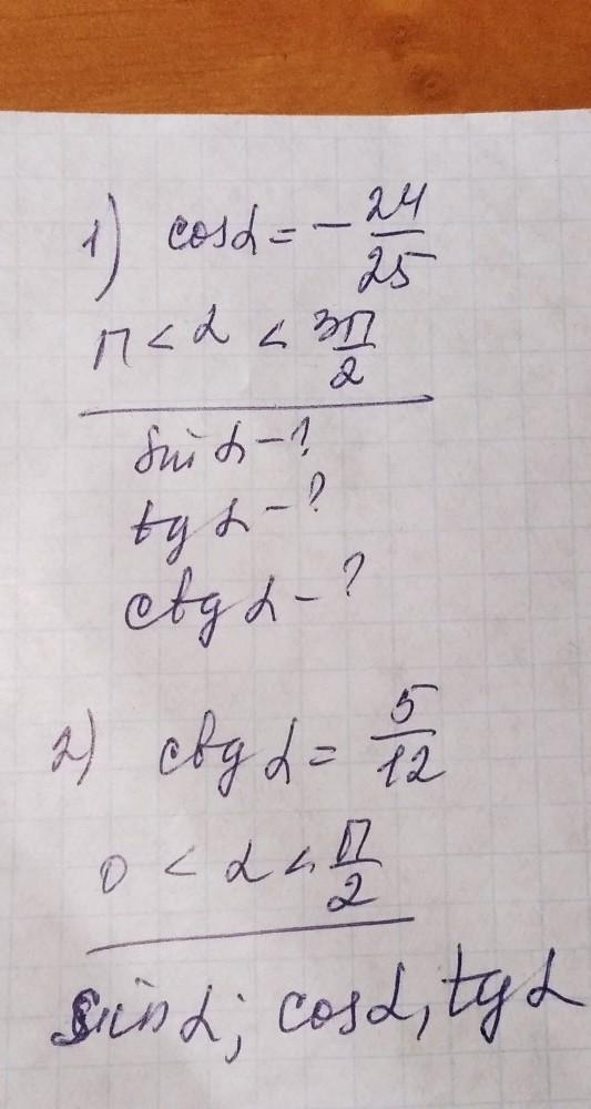 tg a = -7/25 : (-24/25)= 7/24 => ctg a = 24/7 (катангенс обратен тангенсу)