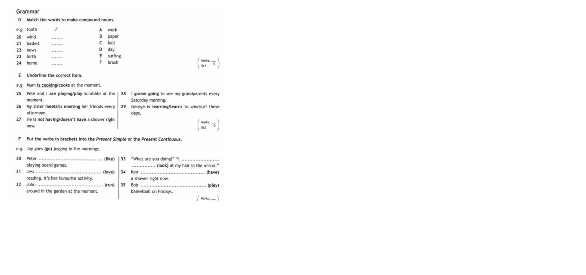 Ответ:Первое задание - toothbrush, windsurfing, basketball, newspaper, birthday, homework.