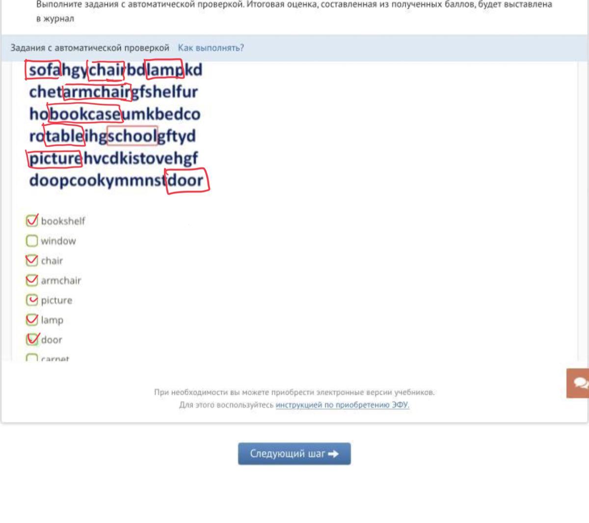 Примечание: Задание считается выполненным, если правильно отмечены все семь слов.