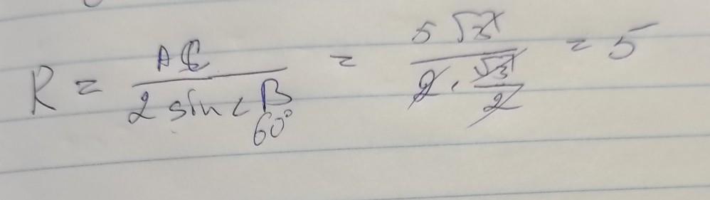 На фото знаходження радіуса описаного коло у довільному трикутнику за формулою