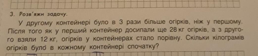 пусть в первом х кг, тогда во втором 3х. После того как в 1 прибавили 28 кг, то в нем стало х+28, а со второго убрали 12кг в нем стало 3х-12 в обоих стало поровну