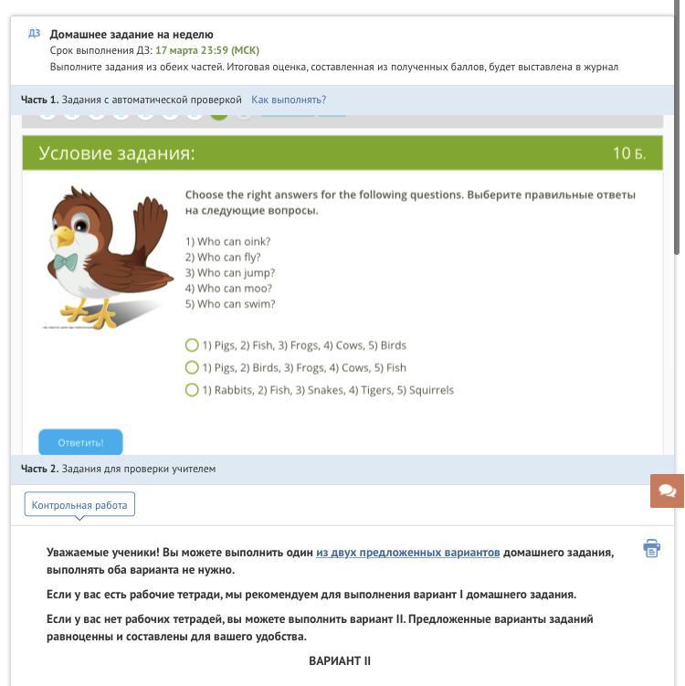 Объяснение: Вообще это задание на логику, правильным ответом будет второе предложение. Привет из Интернет Урока! Good Luck!