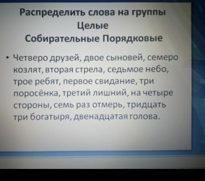 Порядковые:седьмое небо, первое свидание, трое ребят, третий лишний, двенадцатая голова.