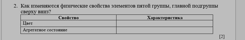 Таким образом, АГРЕГАТНОЕ СОСТОЯНИЕ в пятой группе сверху вниз изменяется от неметалла до металла.