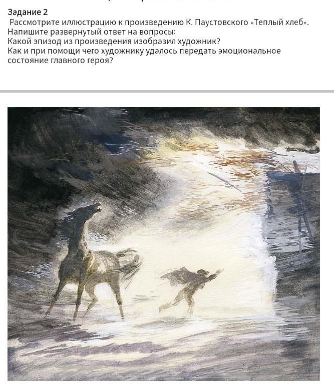 1.) Он изображает тот момент когда филька кинул коню хлеб и начилась буря.