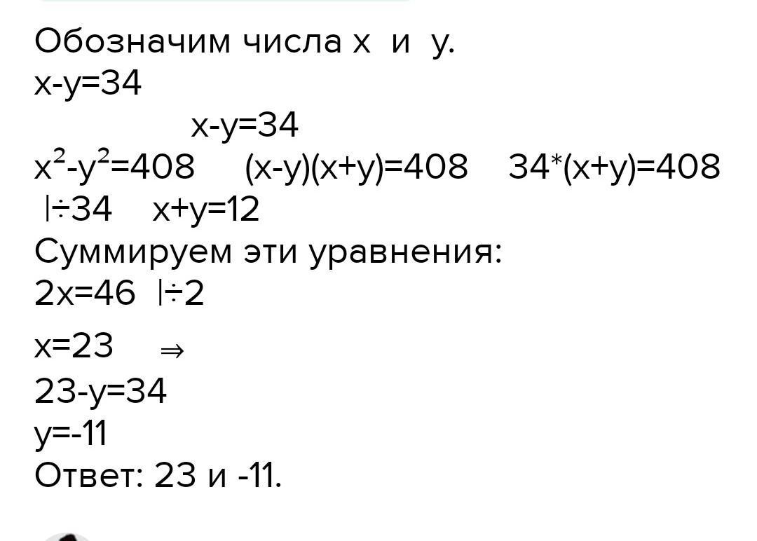 3.Разность двух чисел равна 80, а разность их квадратов 480. Найдите эти числа.