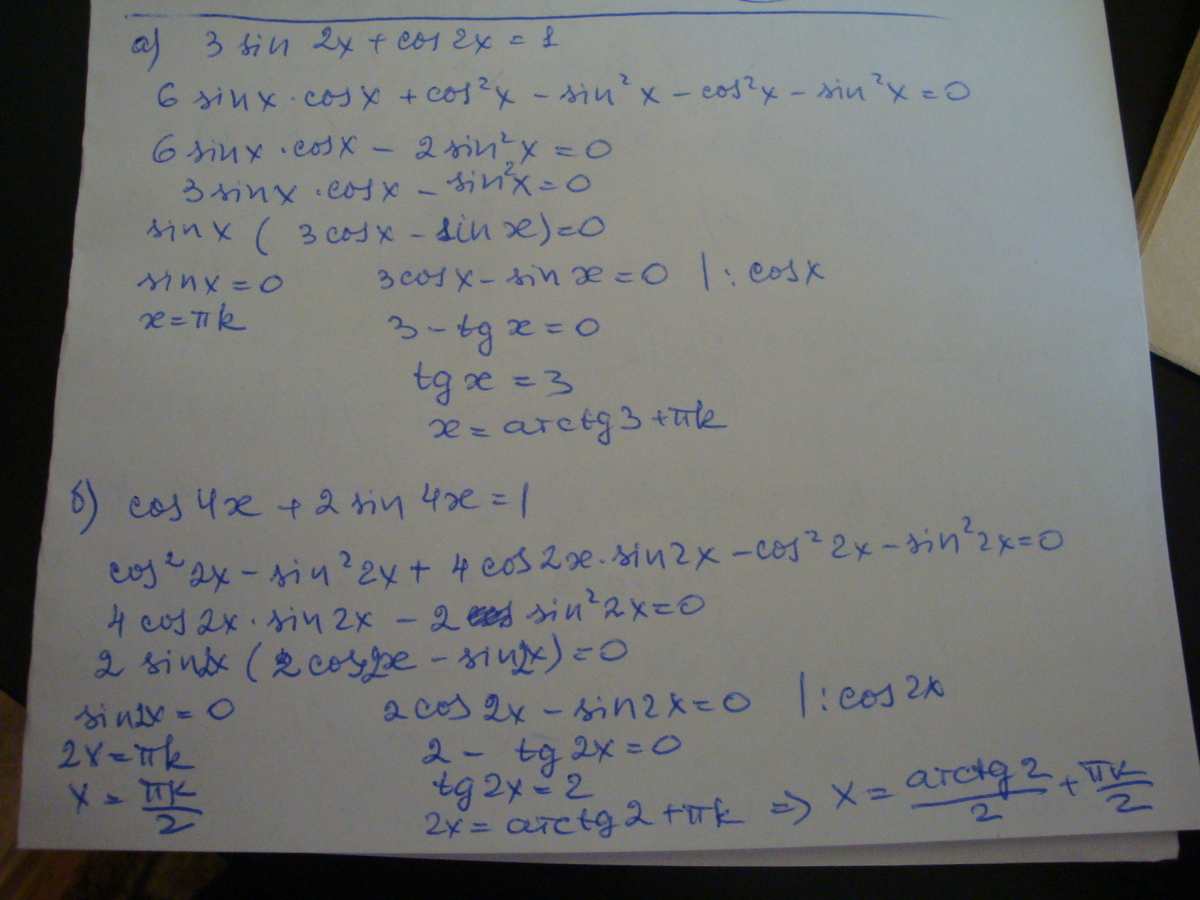 б) cos 4x + 2 sin 4x = 1.
