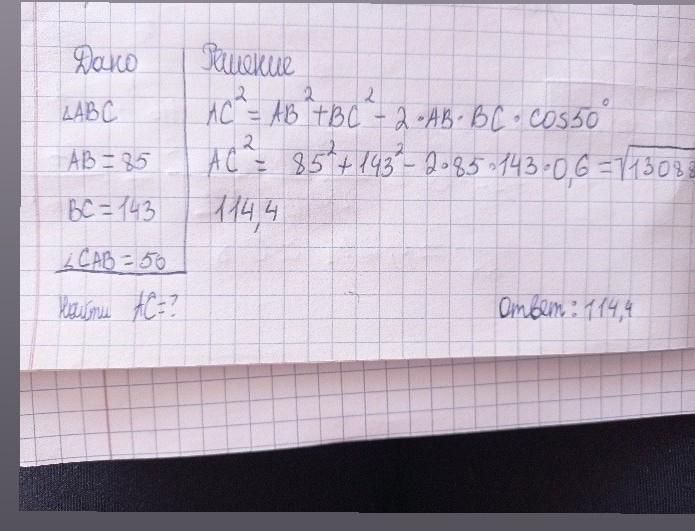 6 (5 баллов) Расстояние от озера Балхаш до места отдыха (ПБ) напротив него - 85 км, а расстояние до Сарышагана (БЛ) - 143 км и 50 °. Найдите расстояние от Сарышагана (AS) до зоны отдыха.
