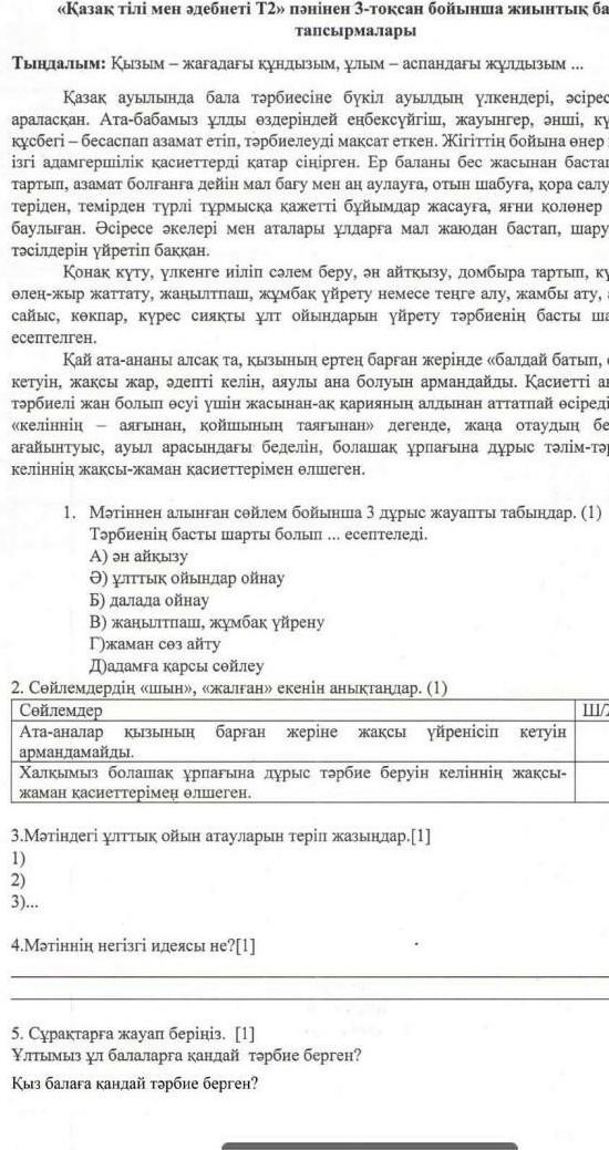 #4 мәтіннің негізгі идеясы: қазақтар бала тәрбиесіне қатты мән берген. Баланың өскенде тәрбиелі, қасиетті болуына барынша тырысқан.