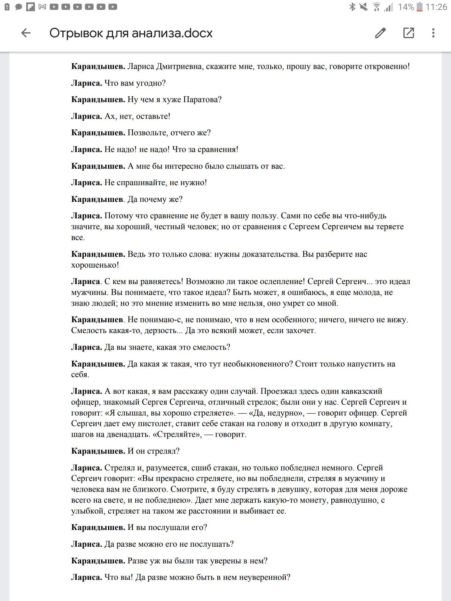 Прочитайте фрагмент текста пьесы "Бесприданница". Задания: