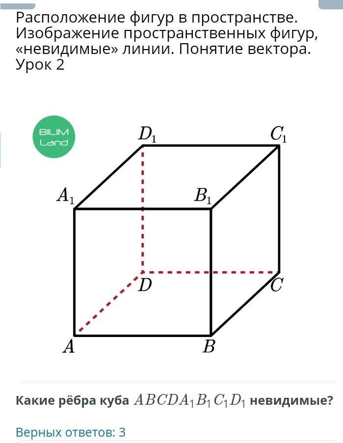 Помогите с заданием в онлайн мектеп Расположение фигур в пространстве. Изображение пространственных фигур, «невидимые» линии. Понятие вектора. Урок 2