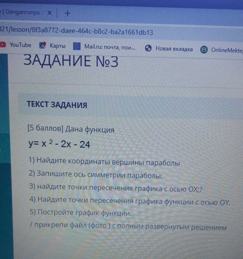 [5 баллов) Дана функция
