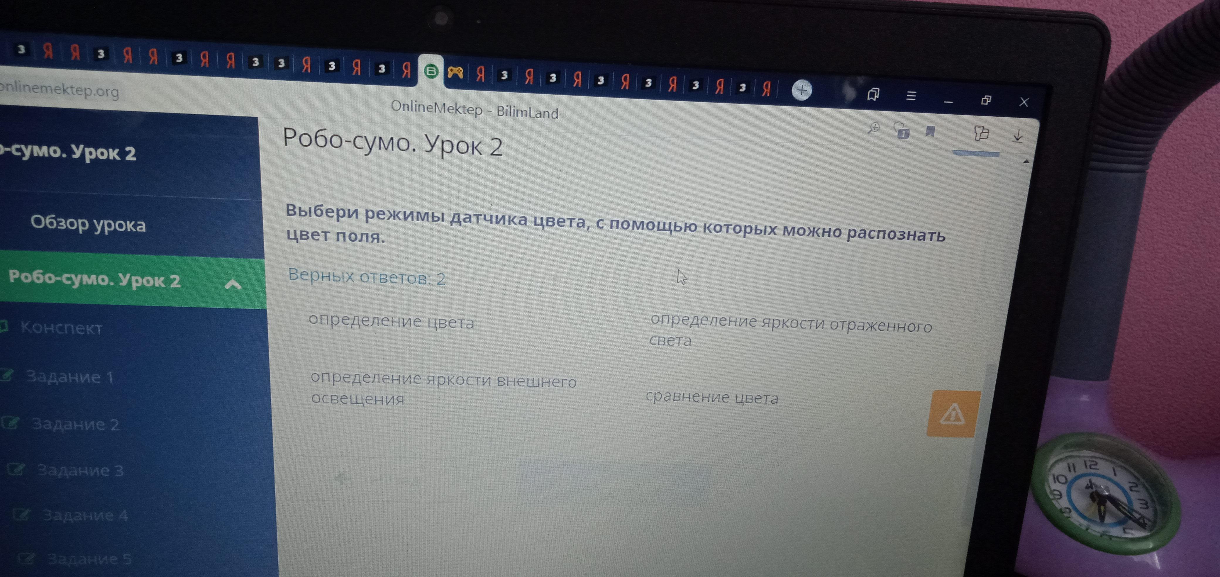 Смотри там ответы такие : определение цвета и определение яркости отрожённого цвета