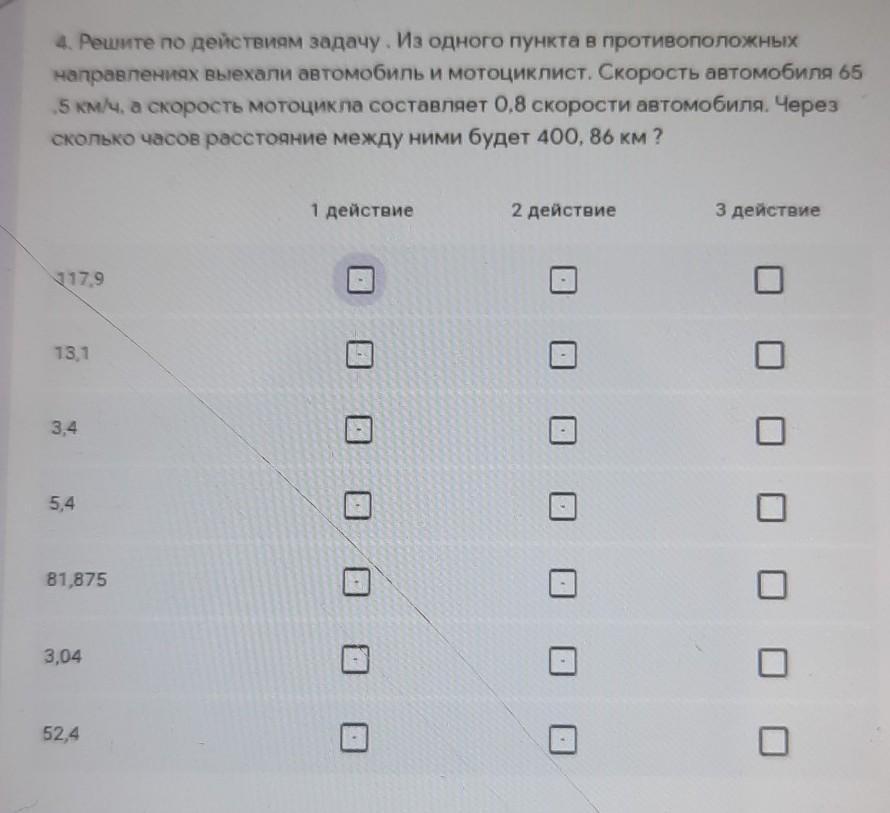 5 км/ч, а скорость мотоцик по составляет 0,8 скорости автомобиля. Через
