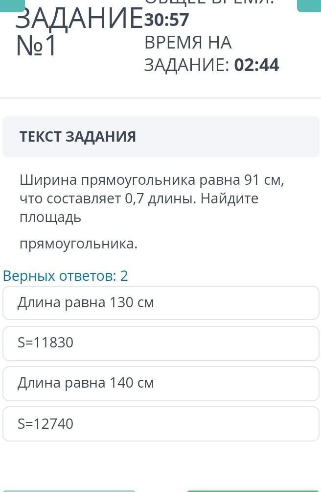 Ширина 91 см, что составляет 0,7 длины. Найти площадь.