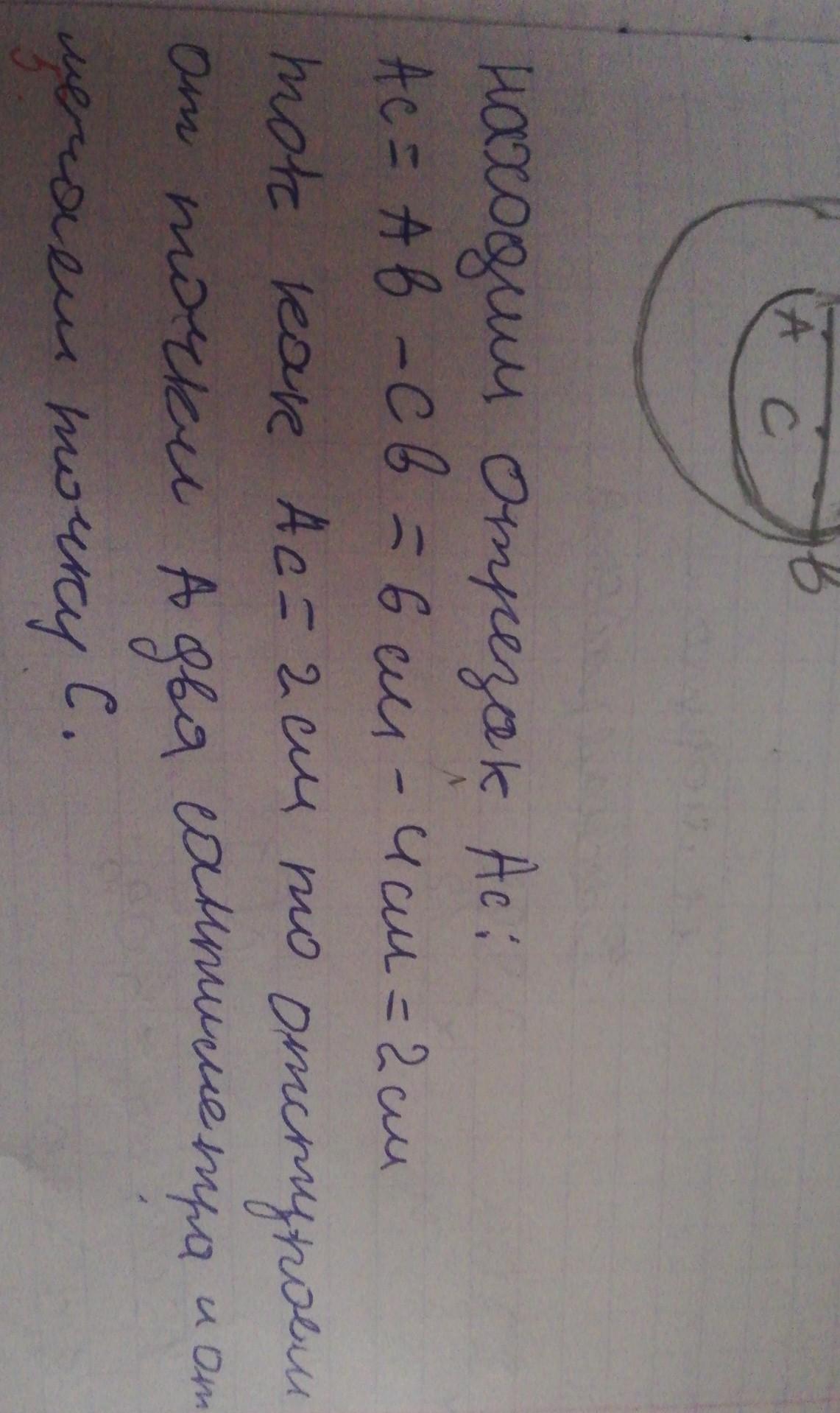 Так как AC = 2 см, то отступаем от точки A два сантиметра и отмечаем точку C.