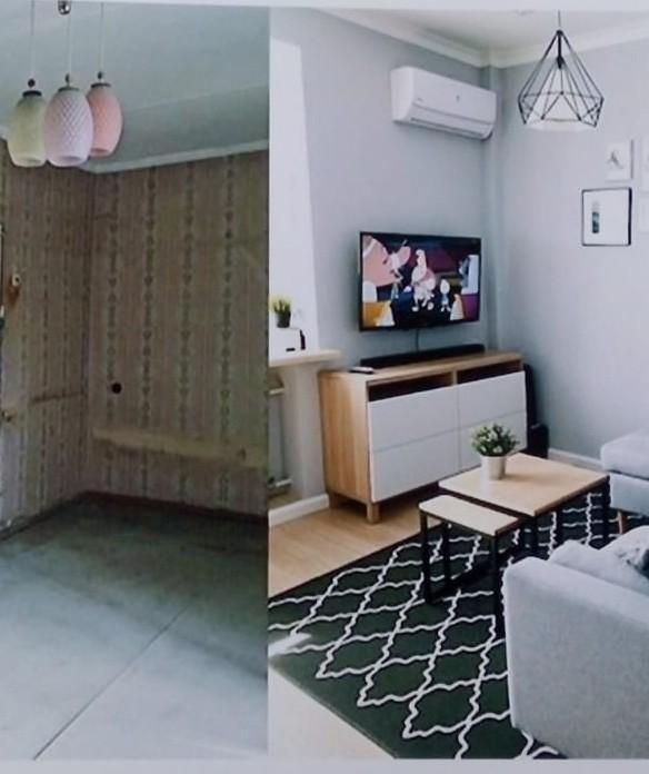 a lot has changed in this room! In this room, new wallpaper was pasted, a new chandelier was hung and new furniture was installed. The change in this room is amazing! In my opinion, this room has become very comfortable and beautiful.