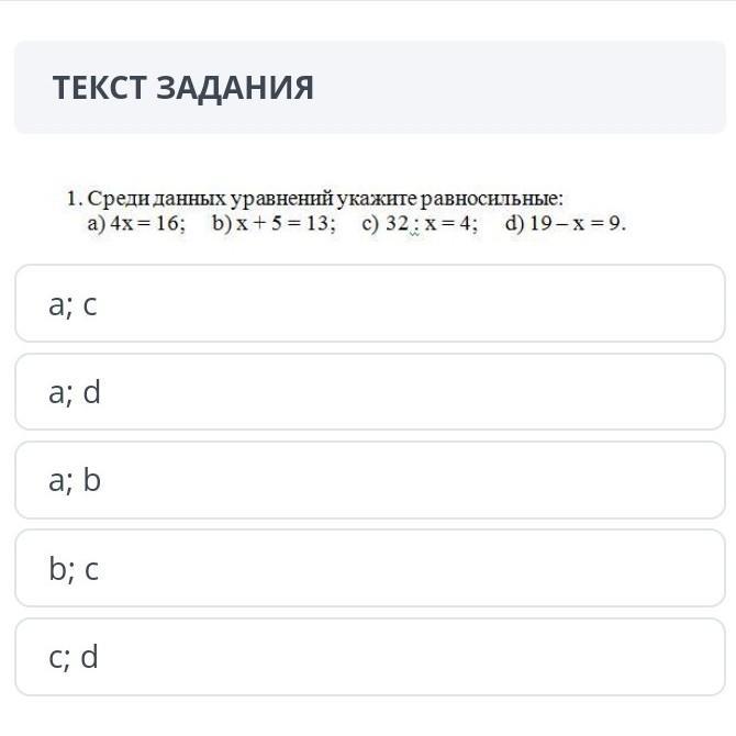 Уравнения называют равносильными, если они имеют общий или одинаковый корень т.е. ответы совпадают, либо уравнения не имеют решений.